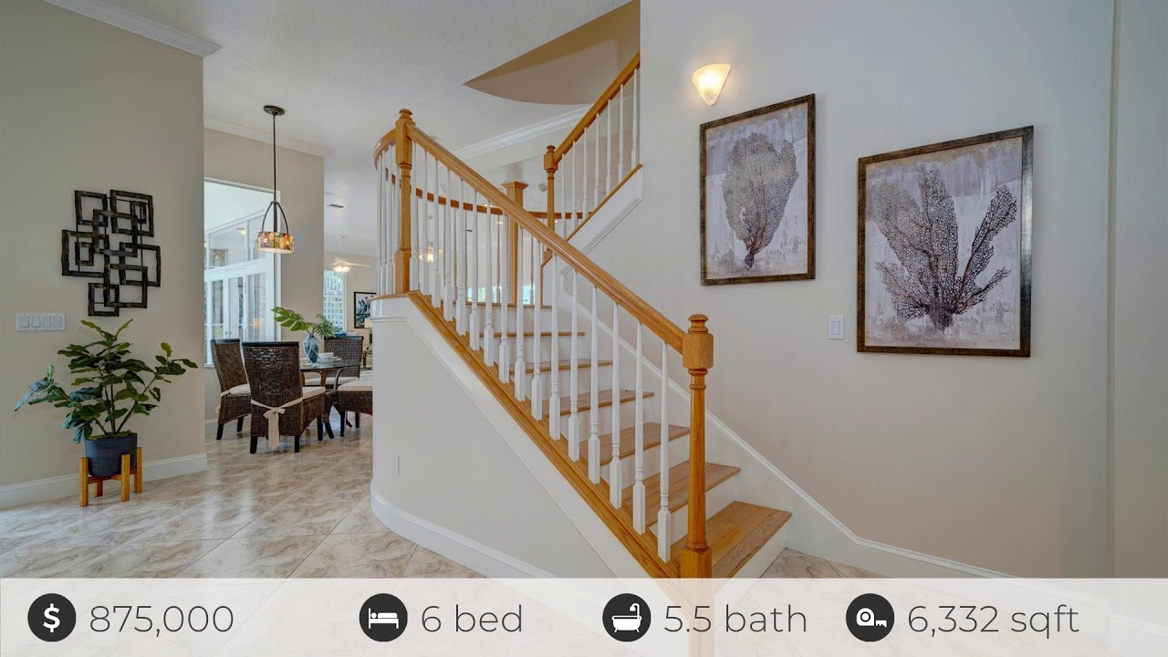 See the Property Website! :: Scott & Amy Ferguson – Coastal Properties Group International/Christie’s International – 727-744-0993 & 727-644-1254 :: Majestic Resort Style Home, a Luxurious Tropical Paradise is waiting for you. Come home to your castle, where you?ll find attainable luxury, family living. This elegantly appointed, move in ready, 6 bedroom / 6.5 bath home offers an open concept, split floor plan that shines with an abundance of natural light. You will enjoy 6,332 sf of living area, surrounded in back by a sparkling pool/spa, with a 2-story screened enclosure, surrounded by towering palms and lush tropical landscaping. This custom built, one owner home has everything you could ever dream of to build a lifetime of memories. Upon approaching the front entry, take note of the lovely courtyard, and tropically landscaped koi pond, hear the soothing sounds of the waterfall. Enter the front door with lovely etched coastal designs, the foyer opens to an open, spacious and welcoming living area with high ceilings and an enormous, south facing wall of glass and French doors, with captivating views of the resort style pool. The beautifully etched ocean themed glass, tastefully placed throughout the home is stunning. To the left of the entry, through double French doors, there is a gorgeous music room/office, with hardwood floors, bay windows, a French door to the paver courtyard and gorgeous etched glass. The dining and living room openly flow to the great room, and kitchen. The gourmet kitchen is the heart of this home and is outfitted with exquisite granite countertops, an abundance of solid wood cabinets with roll out drawers, top of the line appliances, an island with secondary sink, and a lovely breakfast nook that offers an option for casual dining. The laundry is conveniently located off the kitchen, featuring a laundry chute! There is a special pantry area that was built for use as a hurricane shelter to protect the family if necessary, reinforced with 5,000 PSI concrete, rebar, 3?x3? footers, complete with a kick out escape hatch, and steel door. The core of this home resides in the entertainment and family areas highlighted by the incredible, sprawling, heated saltwater pool. So many windows across the back of the home allows you to feel the outdoor living from the inside! There is a luxurious guest suite on the main floor, which allows guests privacy. Ascend the sweeping semicircular staircase, strategically placed to overlook the entire main living and pool areas. You are met by a family game room/great room, and further through French doors, you will have a beautiful window lined yoga studio, art studio, or gym with beautiful outdoor views. Whatever your desires may be, this will be the perfect spot. To the right of the staircase, moving toward the privately located master suite, passing a beautiful V shaped window, overlooking the pool, conveniently, there is a wet bar with mini fridge, granite, and wood cabinetry. Double doors take you into the amazing 24?x21? master suite. Lush carpet, tray ceiling, surrounded by windows filled with tropical views on 3 sides. French doors open to the balcony overlooking the pool and lush surroundings, all in the 2-story screened enclosure. A spiral staircase will take you to the pool for a swim, or a relaxing soak in the spa. The master bath impresses with double door entry, granite, dual sinks, wood cabinets, walk in shower, garden tub for soaking, large separate water closet, a laundry chute and beautiful custom walk in closet with hardwood flooring. At the opposite end of the upper level, there are 4 spacious bedrooms. 2 bedrooms have French doors to the wrap around balcony overlooking the pool area, and share a Jack & Jill bathroom. The other 2 bedrooms share a Jack & Jill bath, and a Romeo & Juliet balcony. The rooms are very spacious and have custom closets. A spiral staircase also at this end of the home lends access to the pool area. The laundry, kitchen, and half bath are easily accessed from the oversized 2-car garage for ease of getting packages in and out of the car. The garage has a utility sink, freshly painted epoxy floor, windows, hurricane rated garage door, opener, and a side door to access trash and recycle containers easily. Transition outside to a resort style pool and spa, paver decking, fire pit, and walkway The expansive pool deck, with majestic palms, is perfect for entertaining and family gatherings, and offers stunning, serene and relaxing views of your private oasis, a sparkling heated saltwater pool and spa, and lush, tropical landscaping. You will be enchanted by the beautiful, colorful mosaic tiled marine life of sailfish, mahi, sting rays, starfish, and sand dollars at the pool bottom! The pool is large enough to swim laps, and is 9? at it?s deepest. There is a beach entry, a sun shelf and a wide staircase for pool entry. The towering enclosure is surrounded by lush tropical landscaping and palm trees.