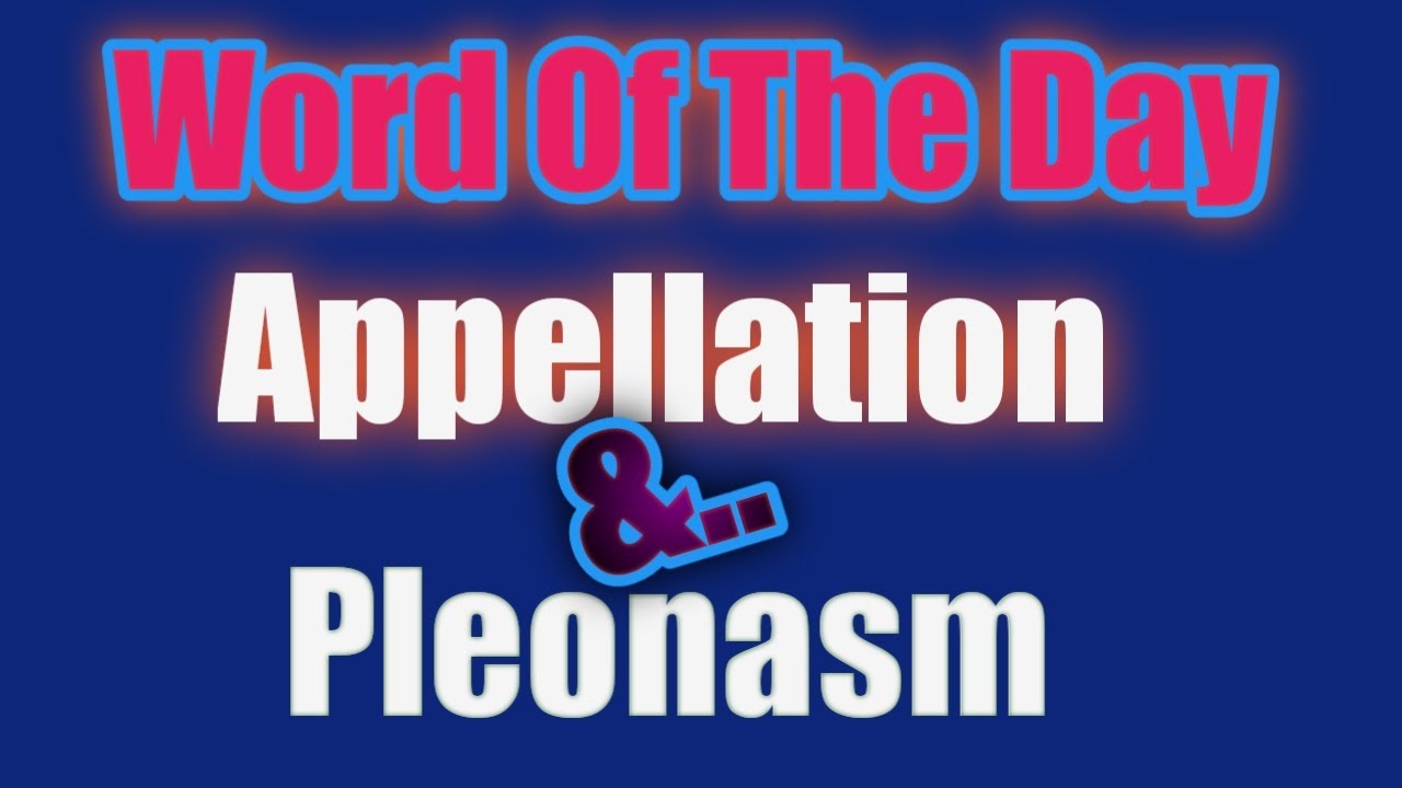 Words Of The Day Appellation, Pleonasm. Word of the provides you daily new words with proper uses and information or origne. After watching this video you will be understood the meaning of both words Appellation and Pleonasm.
