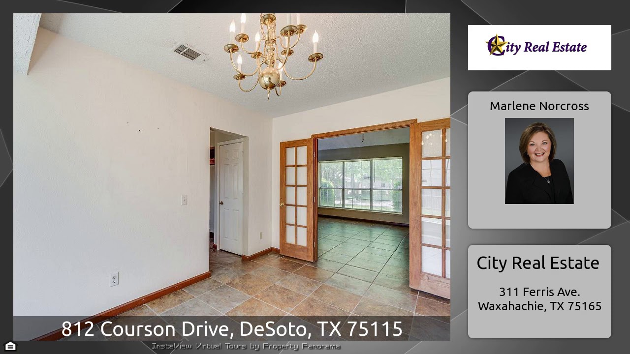 The Virtual Tour for the property at 812 Courson Drive, DeSoto, TX 75115 listed for $209,900: Other homes for sale by Marlene Norcross of City Real Estate: Great Family neighborhood, spacious house for family gatherings and entertaining! Large Family Room with fireplace and tile floor. Dining Room has French doors, bay window lots of natural light. The dining room could be an optional office for those who work from home. Large kitchen with tile countertops and backsplash, large window above sink looks out into back yard. Master downstairs spacious with fireplace and vinyl wood look plank …