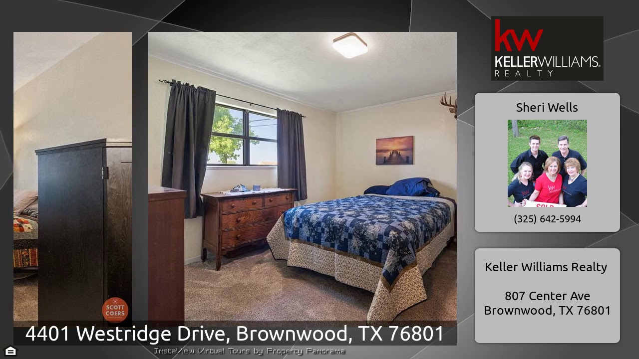 The Virtual Tour for the property at 4401 Westridge Drive, Brownwood, TX 76801 listed for $115,000: Other homes for sale by Sheri Wells of Keller Williams Realty: This great home sits on a large corner lot nestled in a very nice, secluded neighborhood. The interior is fresh and bright with an open dining and kitchen area. You will admire the crown moulding which accents the kitchen, dining and living room. Glass french doors provide both natural light into the living room and a great view of the large back yard and over-sized concrete patio. Third bedroom would easily serve as a den or …