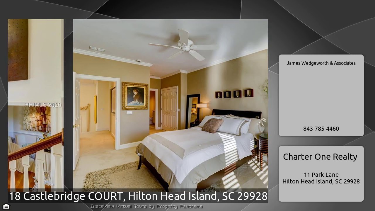 The Virtual Tour for the property at 18 Castlebridge COURT, Hilton Head Island, SC 29928 listed for $1,450,000: Other homes for sale by James Wedgeworth & Associates of Charter One Realty: DIRECT HARBOUR FRONT – Park your boat in your own backyard – up to 65'. Approx. 142' of water frontage. Beautiful 4 BR, 4 BA home with a great open floor plan. 1st Floor Master and 2nd Floor Junior Master Suite. Living Room has 3 sets of french doors to take in the view along with a 2-story ceiling & a fireplace. Formal Dining Room. Kitchen opens to a dining area & Great Room. Large Bonus …