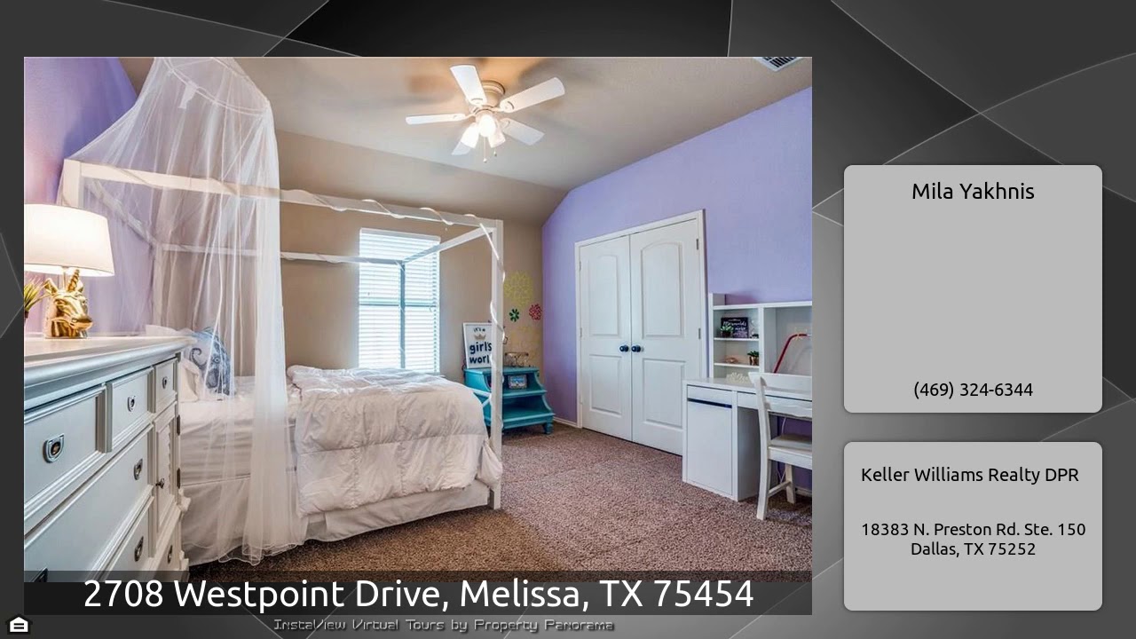 The Virtual Tour for the property at 2708 Westpoint Drive, Melissa, TX 75454 listed for $2,400: Other homes for sale by Mila Yakhnis of Keller Williams Realty DPR: Beautiful home in the idyllic neighborhood of Liberty in Melissa! Harken back to simpler times in this vintage-style neighborhood with cozy porches and lush landscape. A few steps from greenbelt, park, and amenity center. This home features spacious bricked and covered front porch, 3 porches, including balcony and backyard. An incredible media room with a big screen and projector, 2 separate dining areas, an office with french …