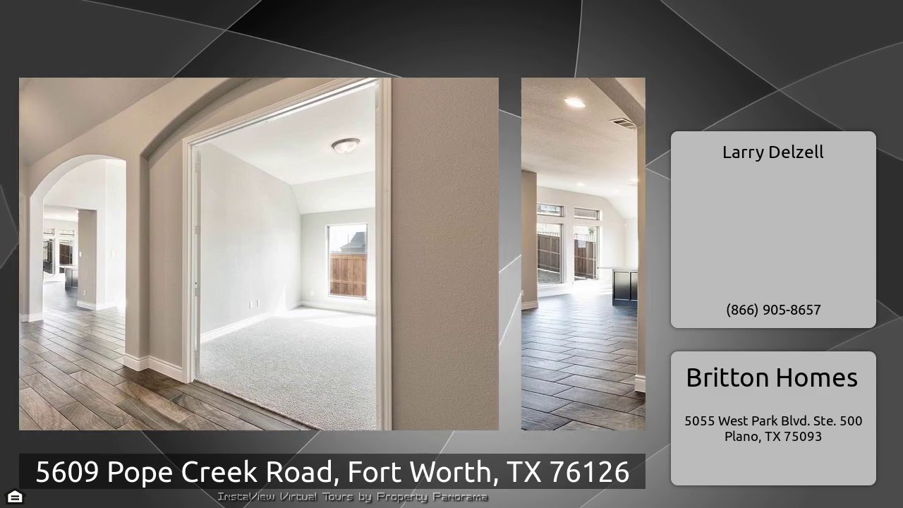 The Virtual Tour for the property at 5609 Pope Creek Road, Fort Worth, TX 76126 listed for $399,900: Other homes for sale by Larry Delzell of Britton Homes: PERRY HOMES NEW CONSTRUCTION READY FOR MOVE-IN! Over-sized cul-de-sac homesite. Extended entry with 12-foot coffered ceiling. Formal dining room. Game room with French door entry. Family room flows into kitchen and morning area. Kitchen features island with built-in seating space, abundant counter space, stainless steel appliance,gas cooking and breakfast area. Master suite with 12-foot ceiling. Garden tub, separate glass-enclosed …