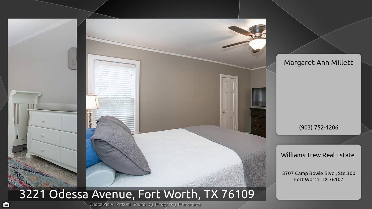The Virtual Tour for the property at 3221 Odessa Avenue, Fort Worth, TX 76109 listed for $350,000: Other homes for sale by Margaret Ann Millett of Williams Trew Real Estate: Charming home in a premier location, just steps from TCU and zoned to Tanglewood Elementary. Brand new roof as of April 2020. From arched doorways to original hardwood floors, this home exudes character. Separate dining area and spacious second living area with french doors which open to the backyard. Great outdoor deck and nice size backyard, perfect for entertaining. Heated and cooled cedar closet in attic with ample …