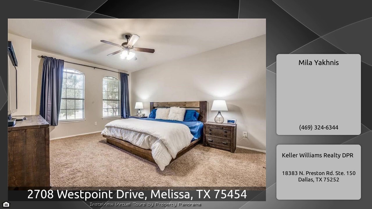 The Virtual Tour for the property at 2708 Westpoint Drive, Melissa, TX 75454 listed for $2,400: Other homes for sale by Mila Yakhnis of Keller Williams Realty DPR: Beautiful home in the idyllic neighborhood of Liberty in Melissa! Harken back to simpler times in this vintage-style neighborhood with cozy porches and lush landscape. A few steps from greenbelt, park, and amenity center. This home features spacious bricked and covered front porch, 3 porches, including balcony and backyard. An incredible media room with a big screen and projector, 2 separate dining areas, an office with french …