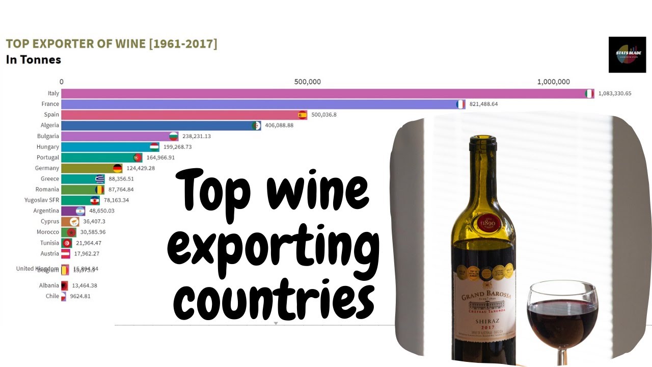 Top wine exporting countries are shown in the video.