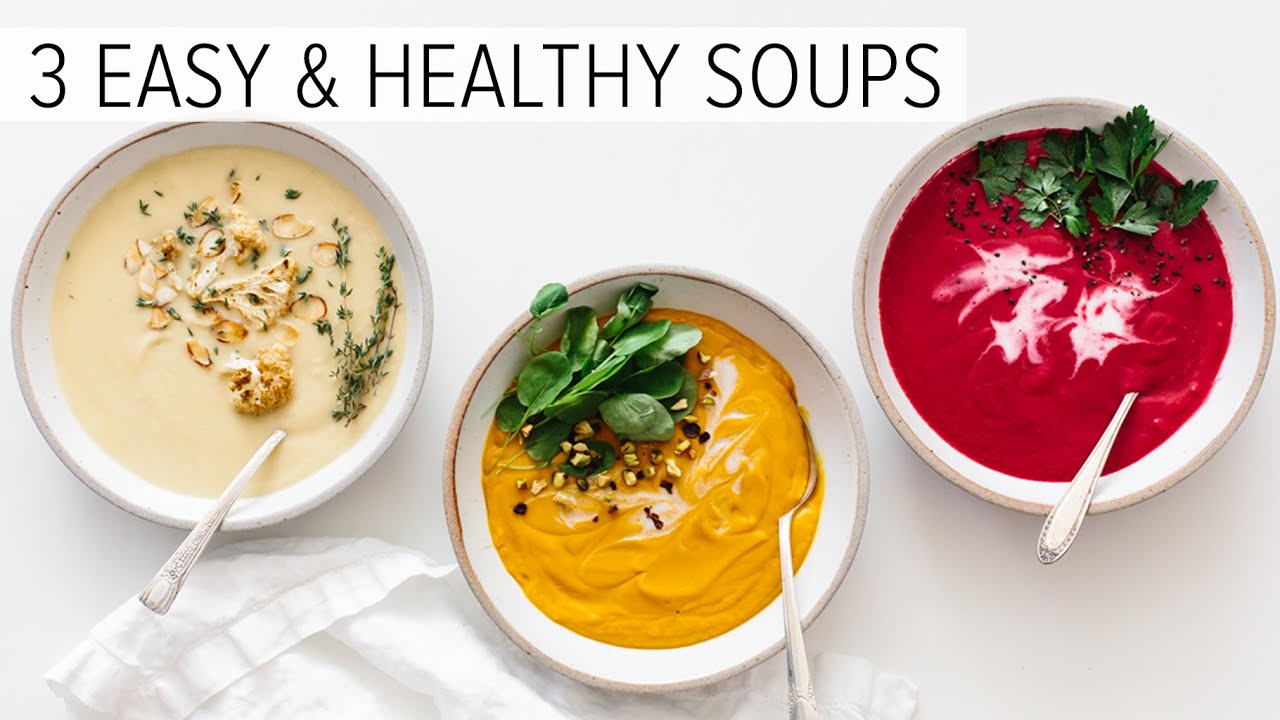In today’s video I’m showing you how to make roasted cauliflower soup, sweet potato soup and beet soup. All are dairy-free and vegan. And I have several more soup recipes on my website. Just click the blog post link below. Enjoy!