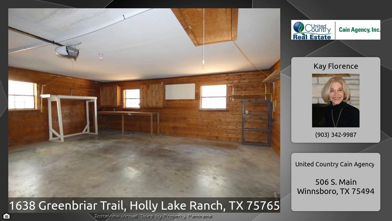 The Virtual Tour for the property at 1638 Greenbriar Trail, Holly Lake Ranch, TX 75765 listed for $159,500: Other homes for sale by Kay Florence of United Country Cain Agency: Always wanted a log cabin in the woods? This Satterwhite log home sits back from the street approx. 85' on a wooded lot &has a real country feel with no homes right up next to you. There is a 37' covered front porch perfect for some rocking chairs& nature watching! Living room has a vaulted ceiling & big stone WBFP. Spacious kitchen & dining room with French doors to a 10×10 open deck with built-in seating. Extra …