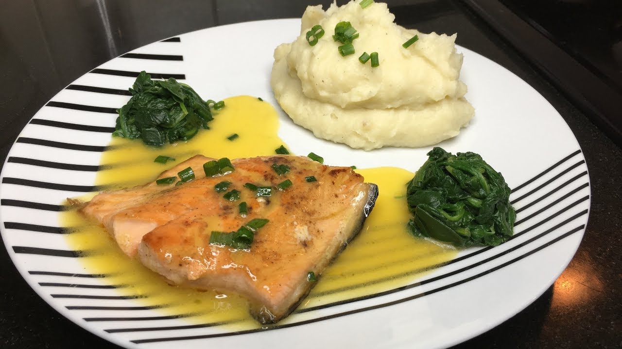 Hello guys!! Welcome back to my channel. I hope you all doing okay. In today’s video I make Salmon French Butter sauce with mashed potatoes and spinach. French butter sauce is Beurre blanc in French. It is a classic creamy French sauce that is made with butter, shallots, vinegar or white wine, and lemon juice. The French Butter Sauce is actually easy to make and it taste better with fish and seafood. It’s the emulsification of the butter that makes this sauce feathery light and the acid from white wine balances out its richness.
