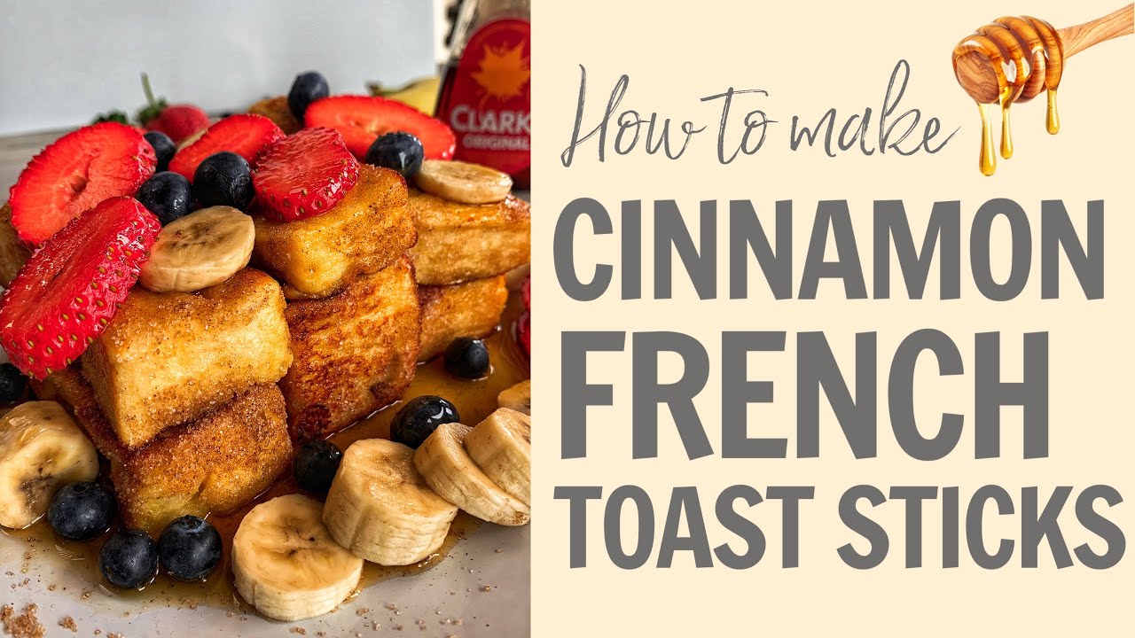 This is my new favourite breakfast! Super fast and easy to make Cinnamon french toast sticks topped with fruit and maple syrup.
