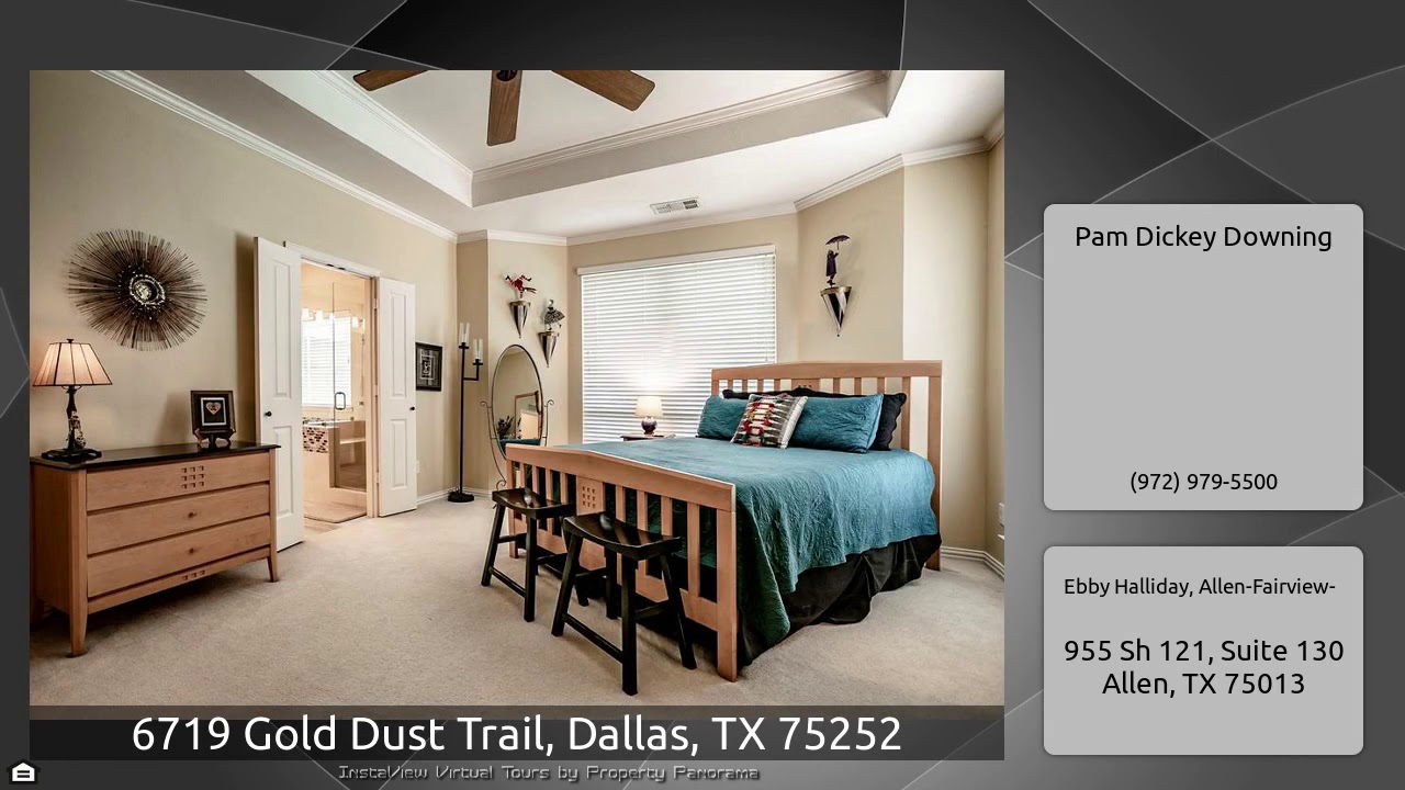 The Virtual Tour for the property at 6719 Gold Dust Trail, Dallas, TX 75252 listed for $550,000: Other homes for sale by Pam Dickey Downing of Ebby Halliday, Allen-Fairview-: One owner custom one story lovingly cared for home on .35 of an acre! & pool! Soft contemporary feel with open flowing floor plan. Special touches include art niches, French Door to patio, fresh decorator paint, some shutters, recessed dining ceiling, 2 planning desks. Family room has full wall of windows looking out to a backyard utopia, giant grassy area, pool, spa, huge shade trees! Chef kitchen with loads of …