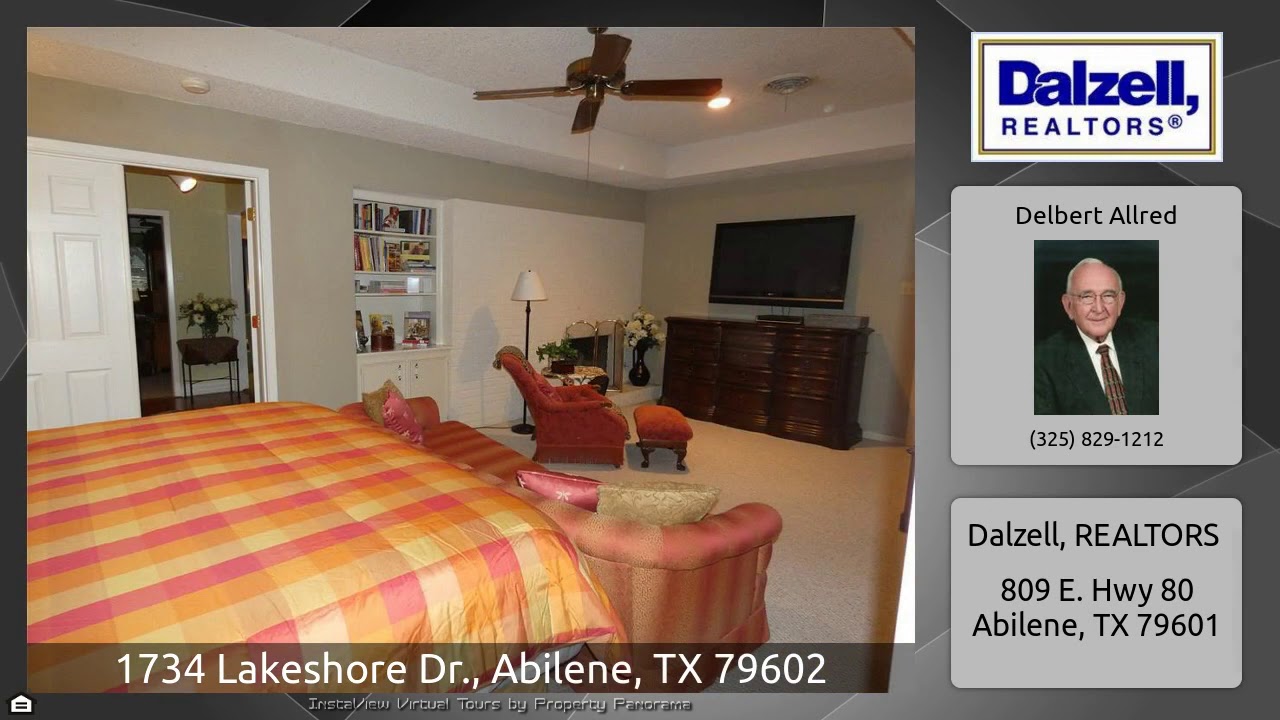 The Virtual Tour for the property at 1734 Lakeshore Dr., Abilene, TX 79602 listed for $274,900: Other homes for sale by Delbert Allred of Dalzell, REALTORS: Gorgeous home located on corner lot across street from Lytle Lake. Three bedrooms, 2 .5 baths, floors in kitchen, breakfast, dining,& .5 bath has wood & bedrooms carpeted kitchen was remodeled 2019 with 5 burner gas cook top, oven & microwave & convection oven. Office has carpet with built-in cabinets. Entrance has marble floor, French doors has triple glass with leaded design. All bedrooms & living room has ceiling fans. Master bedroom …