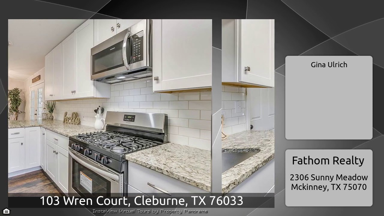 The Virtual Tour for the property at 103 Wren Court, Cleburne, TX 76033 listed for $142,500: Other homes for sale by Gina Ulrich of Fathom Realty: MULTIPLE OFFERS, deadline is Friday May 1 at 5pm. This immaculate home is sure to please, with a completely remodeled kitchen featuring new cabinets and granite countertops. New flooring and paint throughout interior, and abundant built in storage. The french doors in dining open to the covered patio, where adults will enjoy relaxing with a beverage while BBQ'ing, and the kids play in the fenced yard. Extra covered parking behind home in carport …