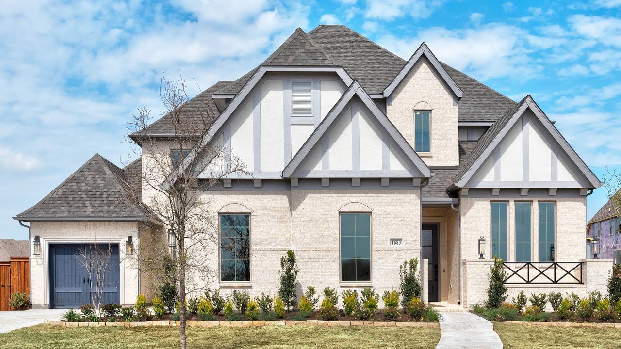 Star Trail is a 900-acre community located just west of the Dallas North Tollway and north of US-380. This 4278 sq. ft. plan offers four bedrooms, four full bathrooms and one half bathroom. Study with French doors set at entry. Hardwood floors throughout first floor. Formal dining room. Family room with a corner fireplace and sliding glass doors. Kitchen features an island with built-in seating space, walk-in pantry and butler’s pantry. Morning area with a curved wall of windows. First floor guest suite. Private master suite with double door entry features a wall of windows. Master bath with dual vanities, garden tub, separate glass-enclosed shower and two walk-in closets. Game room, media room and secondary bedrooms complete the second floor. Covered backyard patio. Three-car split garage. #brittonhomes #brittonhomesdallas