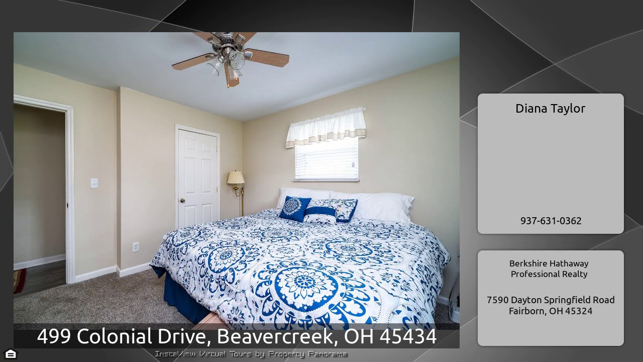 The Virtual Tour for the property at 499 Colonial Drive, Beavercreek, OH 45434 listed for $199,900: Other homes for sale by Diana Taylor of Berkshire Hathaway Professional Realty: Pristine, move-in ready brick ranch on almost a 1/2 acre lot! This home offers many attractive features including a beautifully remodeled kitchen with granite counter tops and stainless steel appliances. The living room connects to a striking dining area with a wood-burning fireplace (not warranted), and French doors that lead out to a covered back patio, and spacious, partially fenced backyard. New light fixtures, …