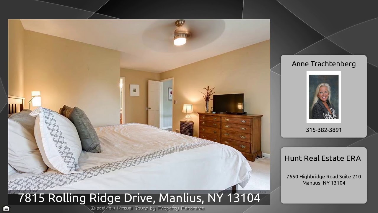 The Virtual Tour for the property at 7815 Rolling Ridge Drive, Manlius, NY 13104 listed for $369,900: Other homes for sale by Anne Trachtenberg of Hunt Real Estate ERA: JUST REDUCED!!Gorgeous Colonial in the popular Spruce Ridge Neighborhood! The dramatic two story foyer welcomes you to this gorgeous home! The living room opens to the dining room through french doors. The large kitchen with granite countertops and stainless steel appliances opens to the dining area and the huge family room. This house is perfect for entertaining with its wide open floor plan. The family room has a wood burning …