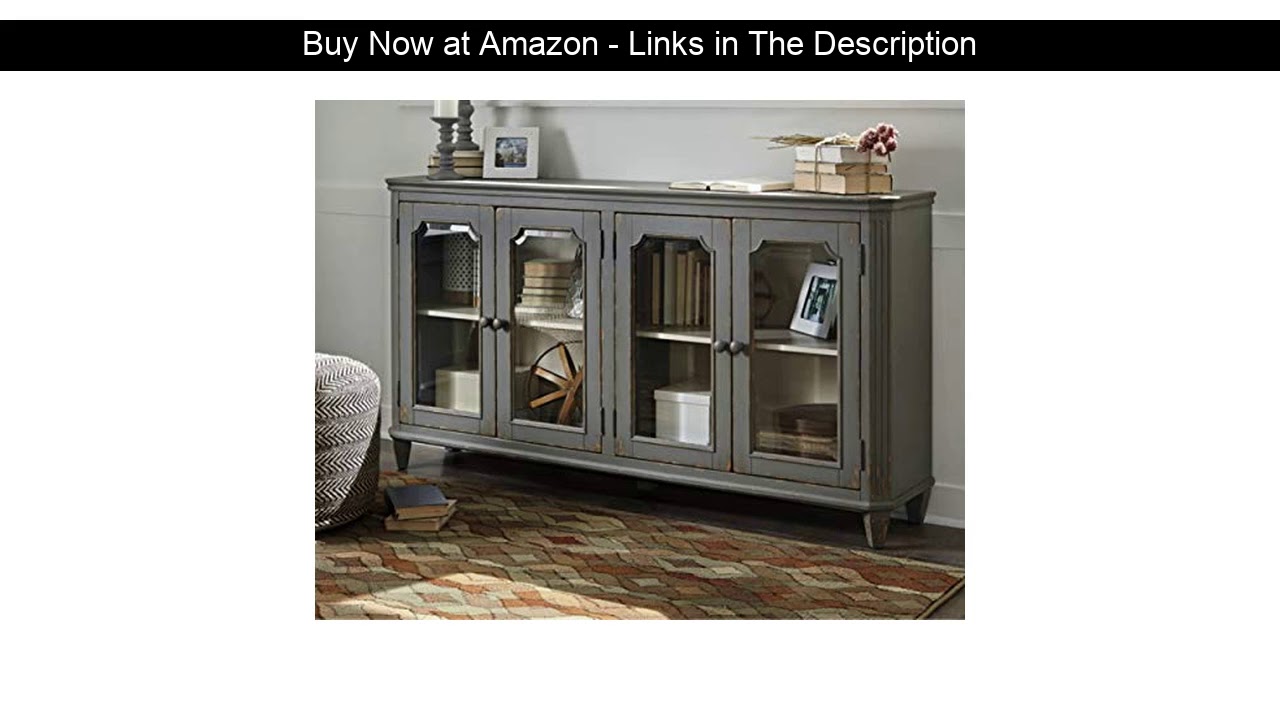 ➜ Signature Design by Ashley T505-662 Accent Cabinet with Doors, 4, Antique Gray/Glass #SignatureDesignByAshley