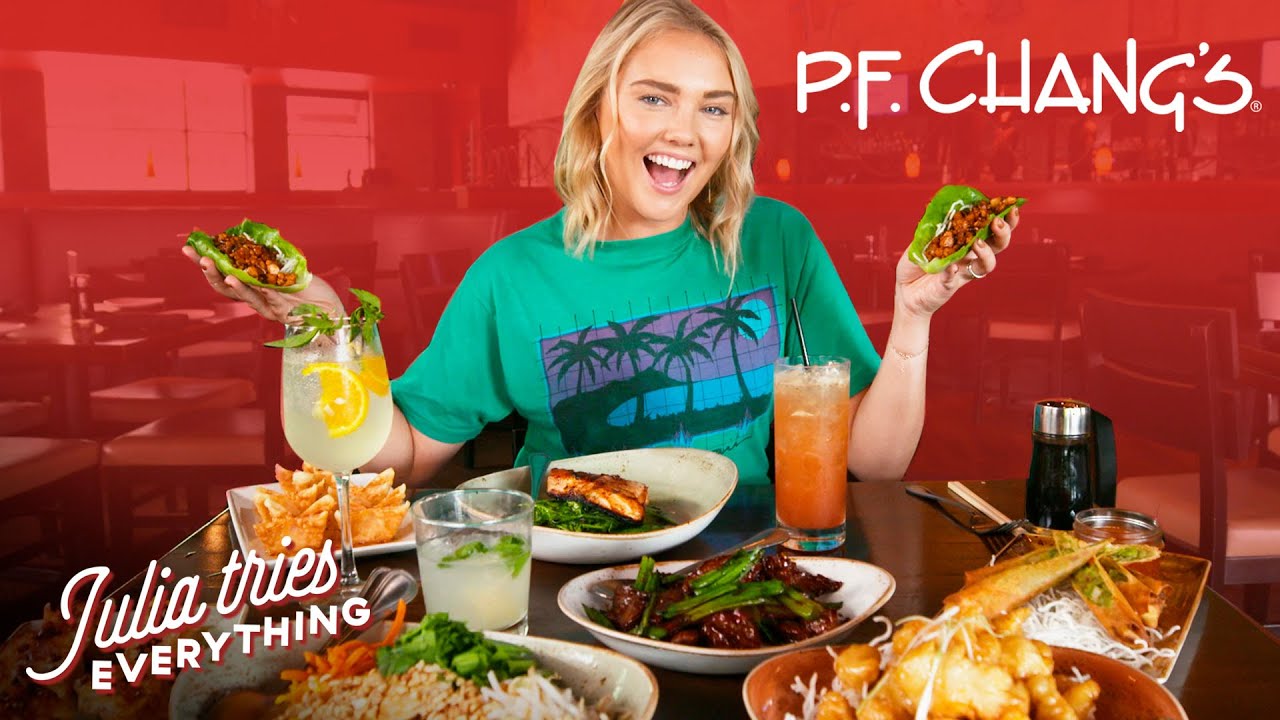 Julia is trying all of P.F. Chang’s most famous menu items including the world-famous lettuce wraps, dynamite shrimp, Mongolian beef, fried rice, sushi, Great Wall of Chocolate, and so much more.
