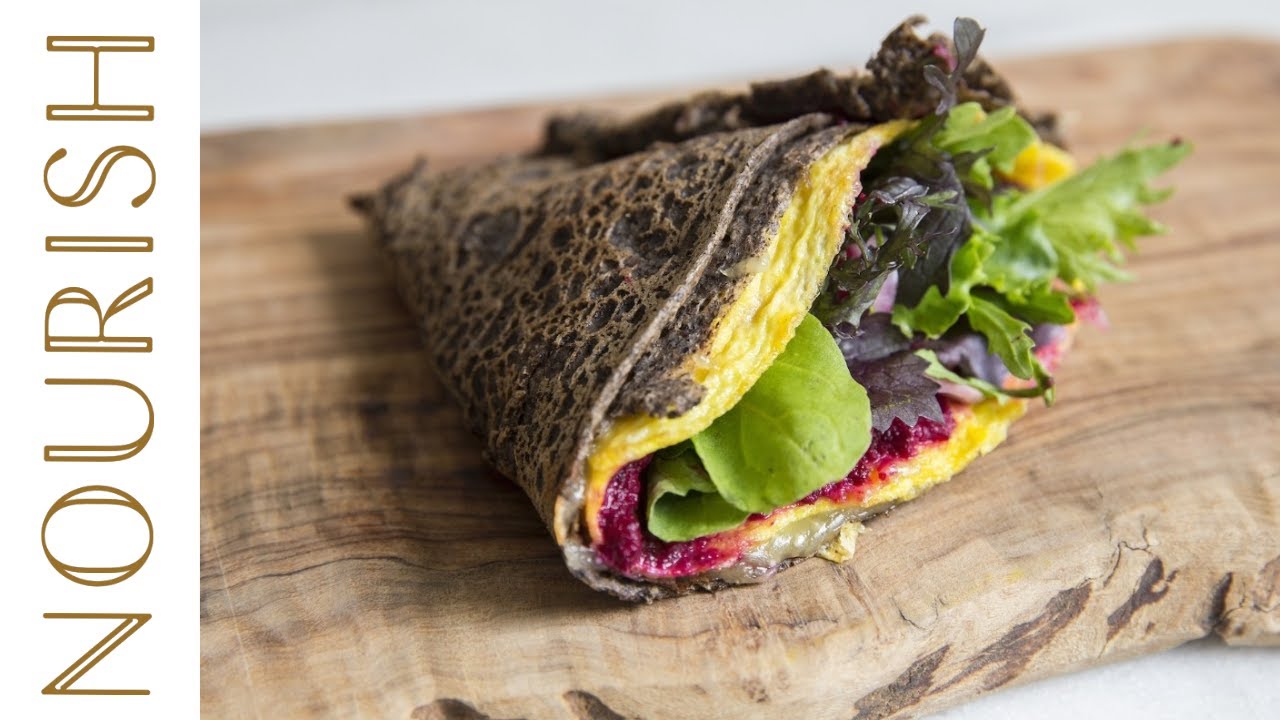 When designing our menu for the cafe, we knew that the crepe needed to be included. For our version, we decided to make it a buckwheat crepe, commonly known as Bretonne Galette or Galette Bretonne or Breton Galette. The star of this French buckwheat crepes recipe is the homemade beet and walnut hummus. Roasted beets, balsamic vinegar, tahini and walnuts make this tangy, earthy spread a must have. It also works great as a dip for veggies and crackers. So make a big batch and keep it in your fridge for up to a week. The buckwheat crepe is complete with an egg omelet, pickled shallots and fresh greens… so yummy!