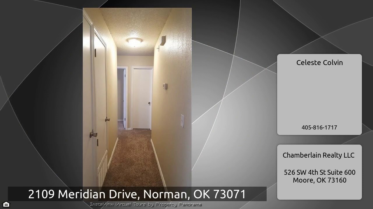 The Virtual Tour for the property at 2109 Meridian Drive, Norman, OK 73071 listed for $1,050: Other homes for sale by Celeste Colvin of Chamberlain Realty LLC: This home near OU is a must see! Enjoy a wonderful floor plan with an very large living area that includes a fireplace. Living space opens directly to dining room. Layout is great for entertaining where your BBQ can be right outside the modern French doors. Large kitchen with lots of counter space and storage. Fridge stays. Secondary bedrooms are nicely-sized with large closets and ceiling fans. Hall linen closet offers lots of shelving …