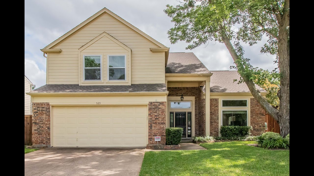 Charming 5 bedroom home in Glade Crossing subdivision with mature shade trees and landscaping offers great curb appeal! 2 living, 2 dining, PLUS 5th bedroom makes a great study. Updated non-grid windows, 2” wood blinds, plush carpeting, lots of storage, and neutral paint throughout. Formal living and dining with access to kitchen. Kitchen has black appliances, built-in microwave, island, and recessed lighting and opens to family living with wood burning fireplace, breakfast area, and overlooks back yard. Upstairs, French doors lead into master bedroom with wood burning fireplace, ensuite bath and huge walk-in closet. 3 additional bedrooms and a large bath. Relax on the covered patio or wood deck with a built-in bench & ceiling fan with private back yard. Quick access to DFW Int’l Airport & multiple highways!