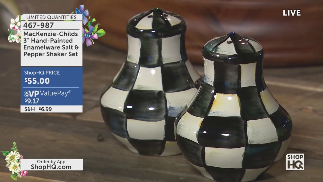 MacKenzie-Childs 3″ Hand-Painted Enamelware Salt & Pepper Shaker Set | MacKenzie-Childs: 3rd Anniversary | ShopHQ | 2020