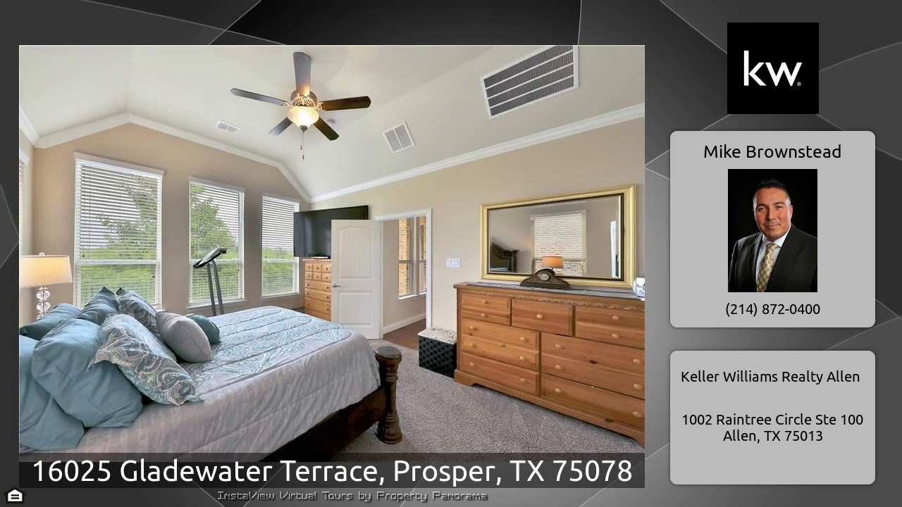 The Virtual Tour for the property at 16025 Gladewater Terrace, Prosper, TX 75078 listed for $380,000: Other homes for sale by Mike Brownstead of Keller Williams Realty Allen: TWO BEDROOMS AND TWO FULL BATHS ON THE FIRST FLOOR! This home features many upgrades, to include engineered wood floors throughout the main living area of the first level, a private study with French doors and a second bedroom down with an adjacent full bathroom. The kitchen opens to the dining nook and family room and features granite countertops with stainless steel appliances and ceramic tile flooring. The second …