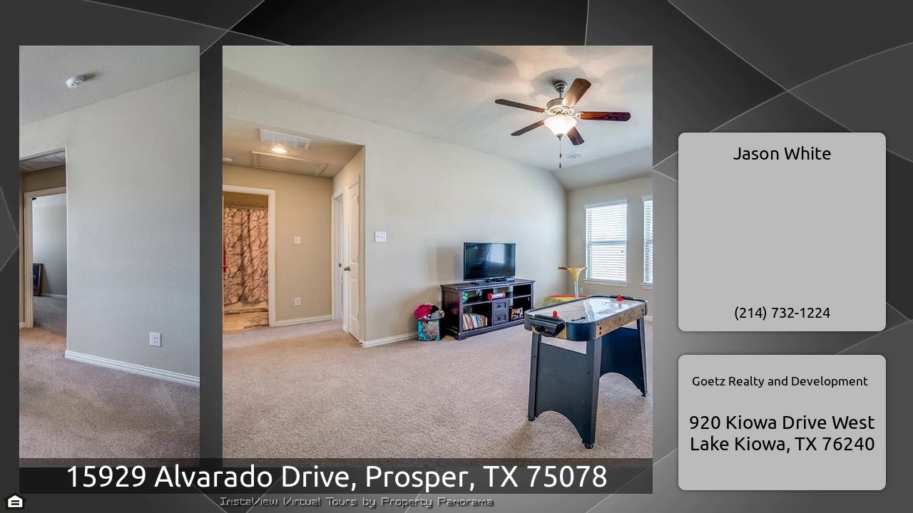 The Virtual Tour for the property at 15929 Alvarado Drive, Prosper, TX 75078 listed for $307,000: Other homes for sale by Jason White of Goetz Realty and Development: Lovely home in the Artesia neighborhood of Prosper! Great curb appeal with stone accents, well maintained landscaping, and private front porch perfect for winding down! Upon entry, you'll find a home office or flex room with French doors. Kitchen features large island with plenty of room for cooking, dining, and entertaining. Escape to your private master retreat with ensuite bath with dual sinks, WIC, and large garden tub. …