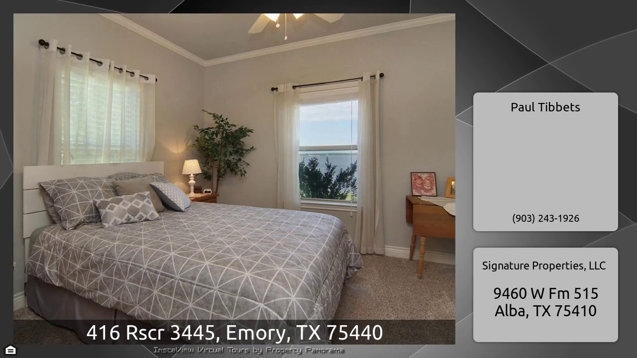 The Virtual Tour for the property at 416 Rscr 3445, Emory, TX 75440 listed for $399,500: Other homes for sale by Paul Tibbets of Signature Properties, LLC: The living, dining & kitchen areas are well integrated into a perfect great room with loads of room for family & friends & a view to die for of Lake Fork. With vaulted ceiling, custom cabinet, granite counter tops…large island & walk-in pantry there is plenty of room for those great meals with a crowd! The split master bedroom has French doors on to the back porch with an extended cover plus small outdoor cooking area off to the side & …
