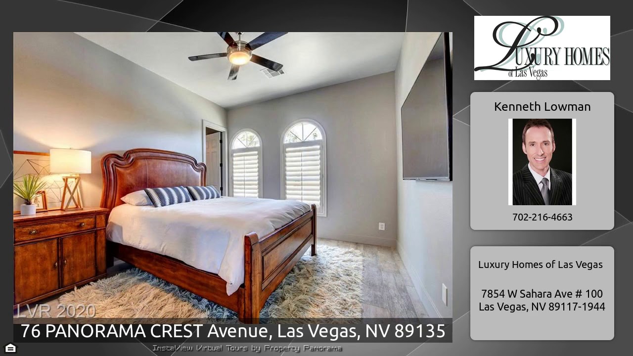 The Virtual Tour for the property at 76 PANORAMA CREST Avenue, Las Vegas, NV 89135 listed for $1,475,000: Other homes for sale by Kenneth Lowman of Luxury Homes of Las Vegas: Sensational, modernized single story on quiet cul-de-sac behind 2nd gate, gated courtyard entry, stacked stone, coffered ceilings, wine rm, open great rm with walls removed, porcelain tile & wall of windows. Stunning gourmet kitch w/island, breakfast bar, walk-in & butler pantry, custom maple cabinets & dbl French doors. Spacious updated master retreat w/spa bathroom, French doors to beautiful backyard w/lush landscaping & …