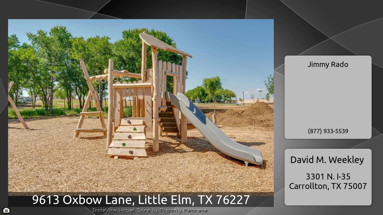 The Virtual Tour for the property at 9613 Oxbow Lane, Little Elm, TX 76227 listed for $358,457: Other homes for sale by Jimmy Rado of David M. Weekley: COMING SOON! NEW DAVID WEEKLEY HOME in family-friendly Prairie Oaks! Coveted model plan with open design, high ceilings, and large bedrooms! Designer color selections, bright kitchen-dining-living area, study with French doors, an abundance of storage, and a 3 car garage! Enjoy a stainless appliance package, granite counter tops, wood flooring. Energy efficient with an excellent warranty!