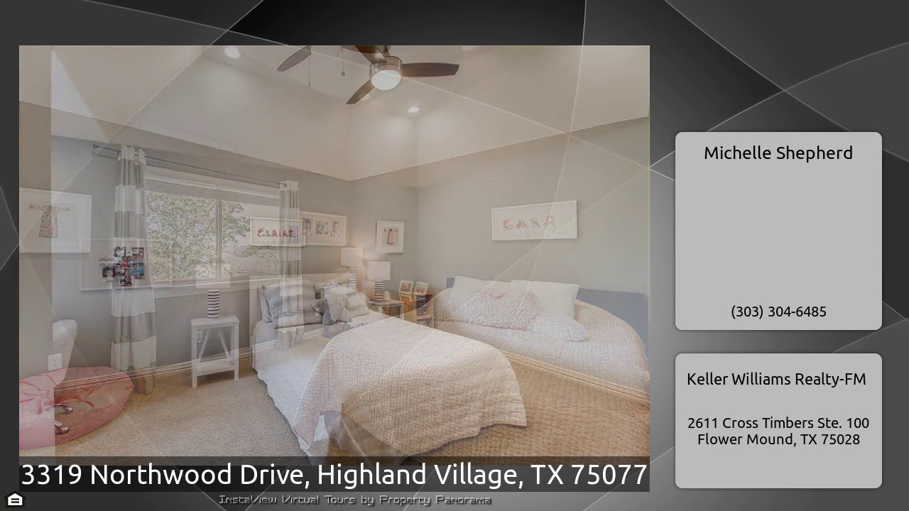 The Virtual Tour for the property at 3319 Northwood Drive, Highland Village, TX 75077 listed for $659,000: Other homes for sale by Michelle Shepherd of Keller Williams Realty-FM: Custom home in Highland Shores! You will love the wood flooring, vaulted ceilings, exposed beams, office with French doors & custom cabinetry and formal dining room. The open floor plan includes a living room with stacked stone gas fireplace, Kitchen with quartz countertop, stainless steel appliances: 6-burner gas cooktop, griddle & custom hood, double ovens, counter-height breakfast bar for 4, and eating area. …