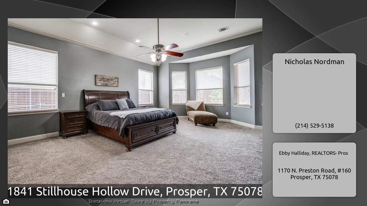 The Virtual Tour for the property at 1841 Stillhouse Hollow Drive, Prosper, TX 75078 listed for $742,975: Other homes for sale by Nicholas Nordman of Ebby Halliday, REALTORS- Pros: Gorgeous Toll Brothers custom home in Lakes of La Cima with a resort style backyard! Grand entry with curved staircase, study with french doors and spacious dining room. Stunning chef’s kitchen with granite counters, stainless appliances, gas cooktop and island opens to the family room with soaring ceilings and back staircase. Master suite with sitting area, spa-like bath with jetted tub, separate vanities, huge …