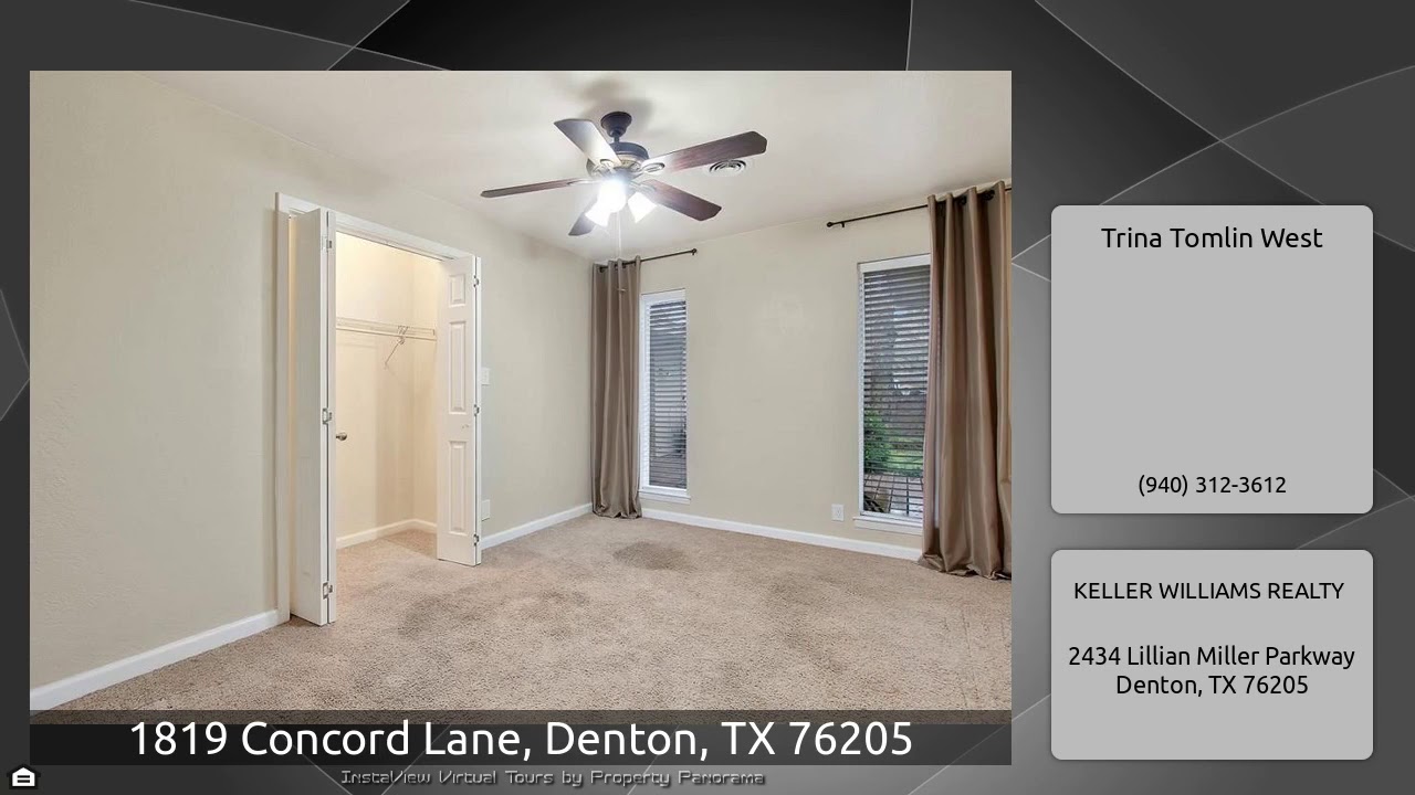 The Virtual Tour for the property at 1819 Concord Lane, Denton, TX 76205 listed for $332,900: Other homes for sale by Trina Tomlin West of KELLER WILLIAMS REALTY: This classic brick SINGLE STORY home sits on a one-third acre lot in the heart of one of the most desirable neighborhoods in Denton! Wonderful curb appeal leads you inside to an open entry and beautiful wood floors. There are 2 living areas and formal dining with beautiful views to the lovely backyard. Large master suite with walk-in shower and separate vanity areas in the upgraded master bath. French doors open to one of the 3 …