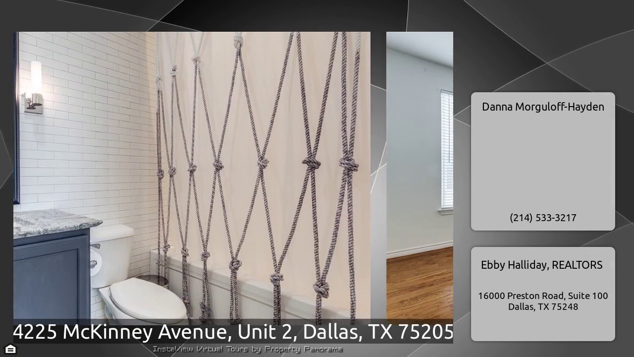 The Virtual Tour for the property at 4225 McKinney Avenue, Unit 2, Dallas, TX 75205 listed for $372,000: Other homes for sale by Danna Morguloff-Hayden of Ebby Halliday, REALTORS: Amazing updated townhouse with two-car garage! Owner, a designer, designed the updates. Beautiful wood flooring in most rooms. Very light and bright with open floor plan. Living area features a wall of built-ins and double French doors opening to upstairs patio. Generous size dining room. Tons of storage. Master bedroom has gorgeous master bathroom with jetted tub and walk-in shower. Large walk-in closet in …