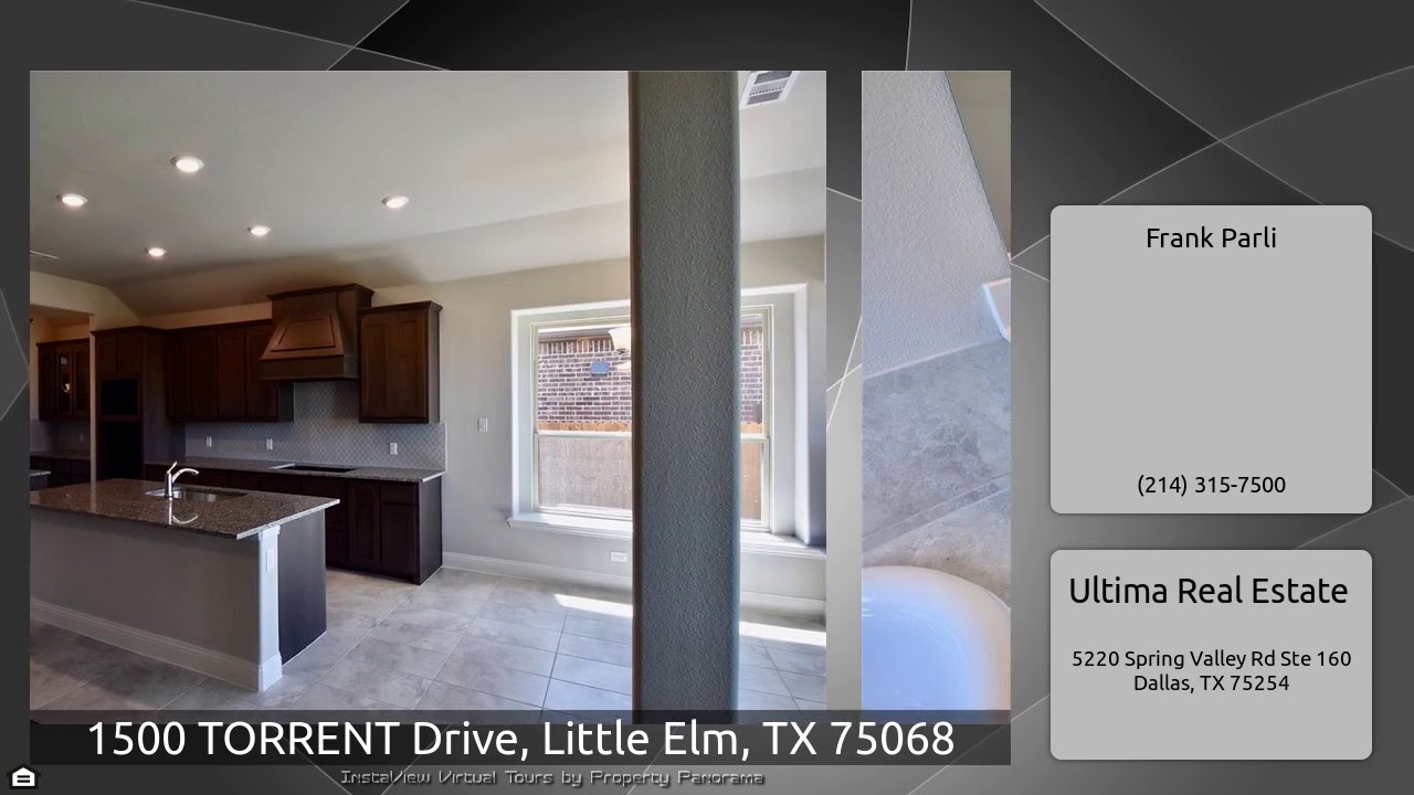 The Virtual Tour for the property at 1500 TORRENT Drive, Little Elm, TX 75068 listed for $349,000: Other homes for sale by Frank Parli of Ultima Real Estate: $10K PRICE DROP! BRAND NEW ONE STORY EAST FACING IN VALENCIA ON THE LAKE! Stone accents and buff mortar. Impressive front door with speakeasy. WOOD in ENTRY, STUDY, F. DINING AND FAMILY ROOM! Study has 8 ft French Doors. Large F. Dining and Master bedroom. Great Master Bath with custom cabinetry and Granite tops. Rare 10ft ceiling and 8ft doors throughout! Large Family Room with knockout fireplace. Great Kitchen with granite tops, …