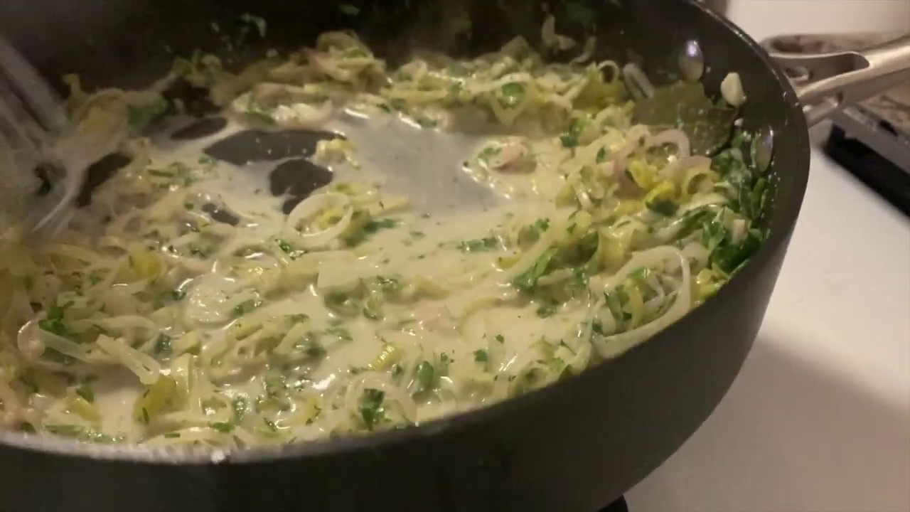 2. Once heated up, add your shallots, leeks, garlic, bay leaves, salt and a healthy bit of pepper and cook for about 10 minutes until tender and sweated out.