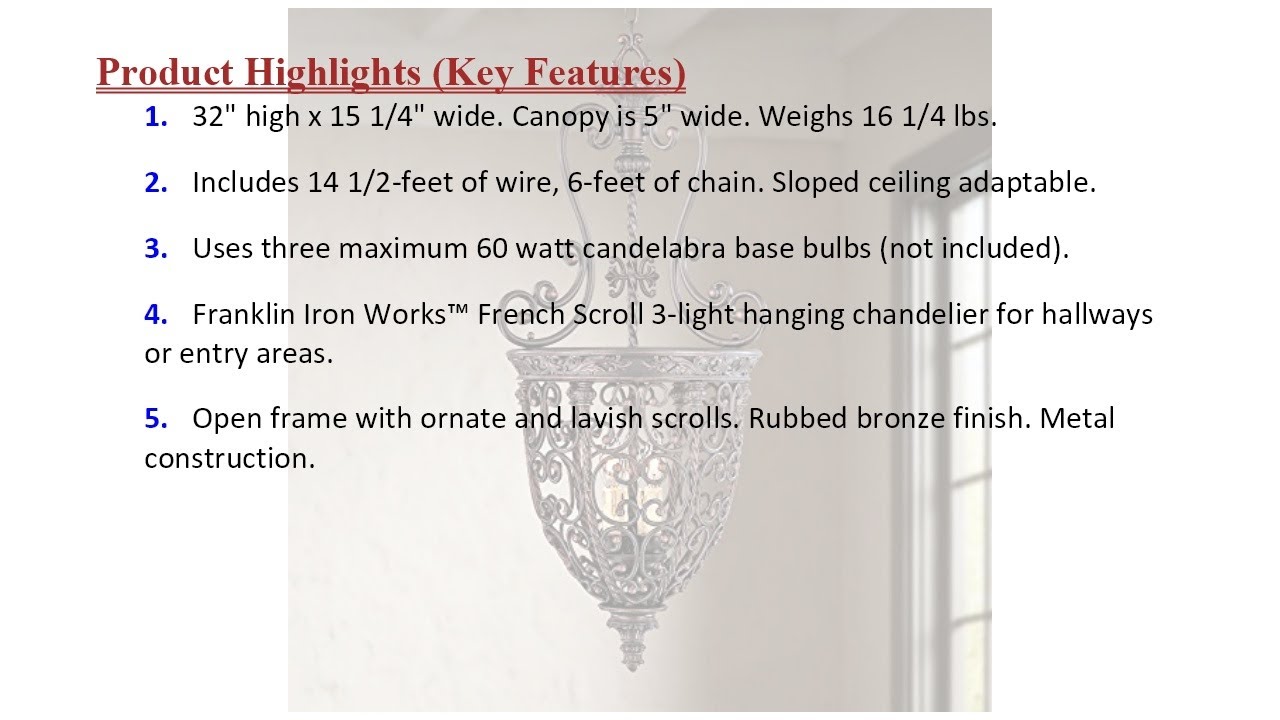 Product Title found at above link: French Scroll Rubbed Bronze Pendant Chandelier 15 1/4″ Wide Rustic Country Iron 3-Light Fixture for Dining Room House Foyer Kitchen Island Entryway Bedroom Living Room – Franklin Iron Works