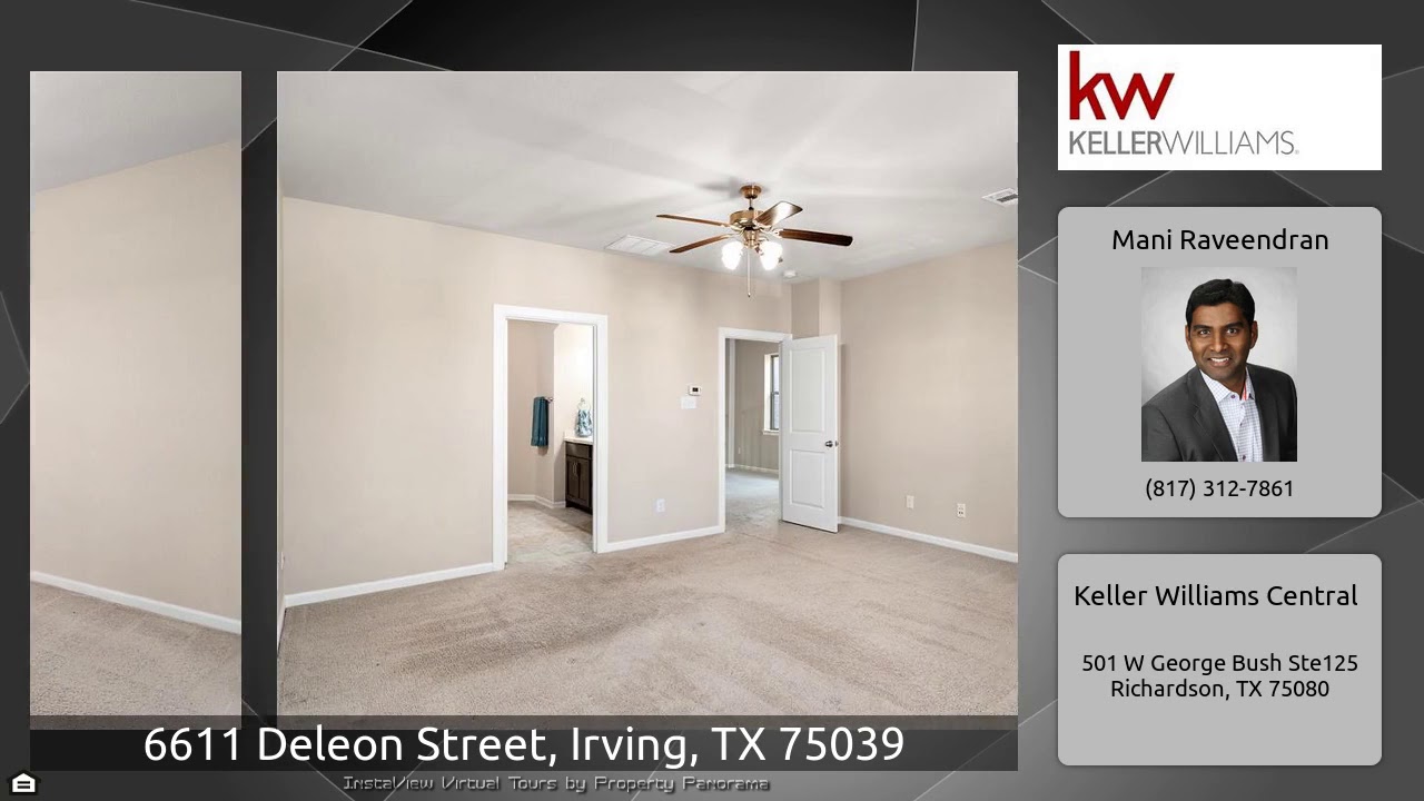 The Virtual Tour for the property at 6611 Deleon Street, Irving, TX 75039 listed for $425,000: Other homes for sale by Mani Raveendran of Keller Williams Central: Well maintained 2014 built David Weekley home under builders warranty till 2024.Money saving energy efficient features such as double pane windows, tankless water heater and Energy Star appliances.AC replaced 2019.Open floor plan offers lots of natural light.Large kitchen with SS appliances, white cabinets and granite ctops open to dining and family room all with wood floors.Spacious office with French doors, powder and utility …