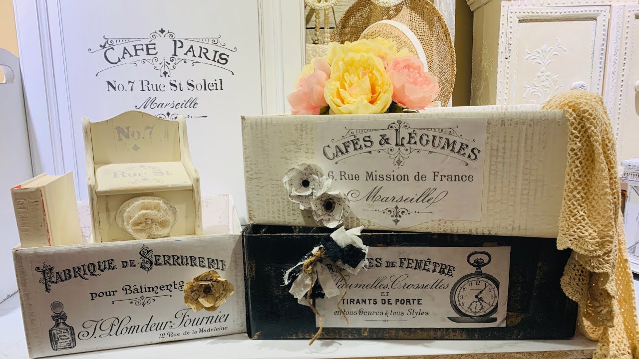 In this video I upcycle and makeover 3 cardboard boxes into shabby chic french country decor pieces and make over a vintage recipe box I purchased at a yard sale for $1! I also show how to make paper flowers/rosettes to embellish the shabby chic boxes. Making the shabby boxes is super easy and very budget friendly! The recipe box now has an elegant French Country style that can used to store recipes and I also show how to make shabby index cards using scrapbook paper. I stage all these pieces showing the many ways these pieces can dress up any space in your home and bring out that French Country Shabby Farmhouse flare! These projects were all very budget friendly and shopped my home for my supplies! Hope you enjoy the video and if you haven’t already, please SUBSCRIBE to our channel, LIKE and COMMENT! Thanks for watching.