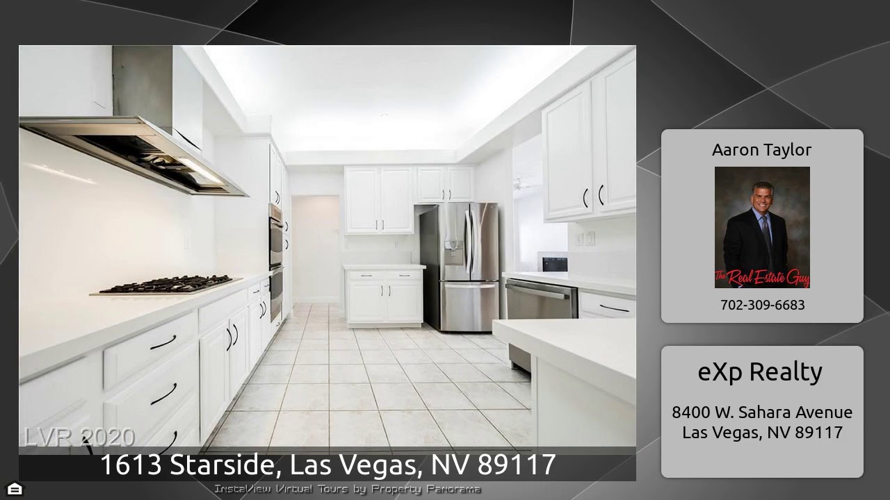 The Virtual Tour for the property at 1613 Starside, Las Vegas, NV 89117 listed for $439,000: Other homes for sale by Aaron Taylor of eXp Realty: Charming single-story in Canyon Gate, a guard-gated golf community. Freshly painted home w/hardwood flooring in the living, dining & family room. Tile in the kitchen & hallways. 2 sets of French doors open up to backyard patio for easy indoor/outdoor living. Master w/French doors that open to the backyard along w/a built-out walk-in closet. Master bath has separate shower & tub, & dual sinks. Kitchen w/SS appliances & beautiful quartz countertops