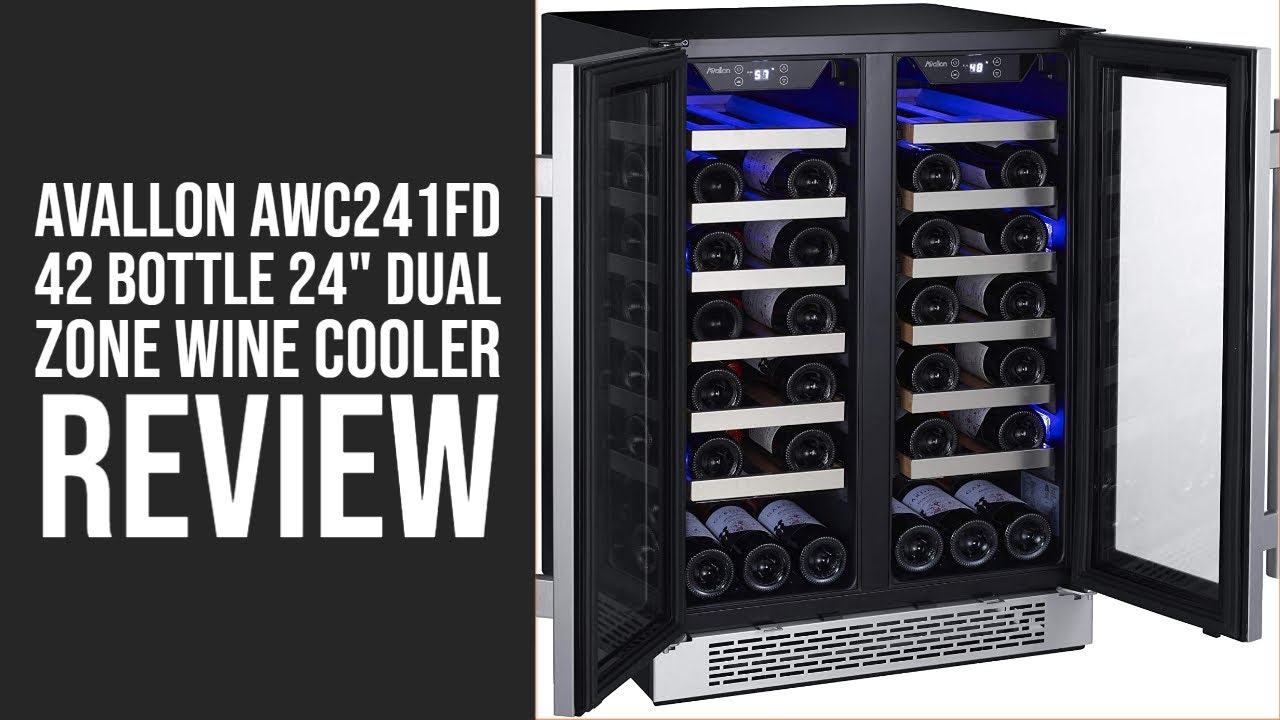 If your wine collection consists of many different varietals, such as red or white wines, then the Avallon 42 Bottle Dual Zone French Door Built-In Wine Cooler (AWC241FD) is exactly what you need. Available in a durable black exterior with French stainless steel doors, this wine cooler looks great anywhere, offering customizable cooling zones for storing your bottles under precise conditions. Each zone features a wide temperature range of 40-65 °F, along with digital controls for convenient adjustments. Take advantage of the 12 wooden roll-out shelves to easily sort and select your bottles, while the interior bottom is scalloped to accommodate additional bottles. Versatile Installation: Whether It’s under the kitchen counter, freestanding in the media room or mounted flush with cabinetry, this wine cooler’s front ventilation will accommodate almost any installation Powerfully Efficient: This unit’s high-efficiency compressor and two internal circulation fans work concurrently to evenly distribute cold air, eliminating the chance for hot spots Digital Touch Controls: Using the digital controls, you can easily view and adjust temperature settings for both cooling zones as well as alternative between interior LED lighting Excellent Insulation: Store and display your most prized bottles without compromising quality; double paned, low-E glass protects the interior from damaging UV rays and other harsh light Illuminate Your Collection: Alternate between this unit’s attractive blue and white interior LED lighting for a customized appearance that suits any occasion Carbon Filters: Both cooling zones feature carbon filtration to prevent unwanted odors and debris from entering the interior and affecting your wine True-Key Locks: The Avallon AWC241FD includes two factory-installed locks so you can rest assured knowing your contents are out of reach from unwanted hands