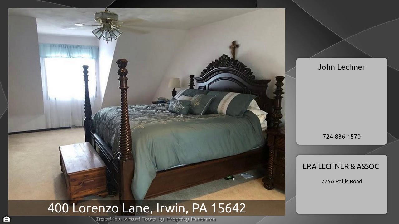 The Virtual Tour for the property at 400 Lorenzo Lane, Irwin, PA 15642 listed for $379,000: Other homes for sale by John Lechner of ERA LECHNER & ASSOC: Gorgeous Tudor Style Estate On Over 6/10 Wooded Acre! Solid 6 Panel Doors Throughout!! 4 Spacious Bedrooms, Master Suite W/Walkin Closet, Whirlpool Tub And Separate Shower. 25X14 First Floor Family With Gas Fireplace And Wet Bar Tucked Behind French Doors. Family Size Dining Room, Equipped Updated Kitchen With Granite Tops And A Huge Breakfast Area. First Floor Laundry, Walkup Third Floor With Heat And Plumbing For Future Expansion. Covered …