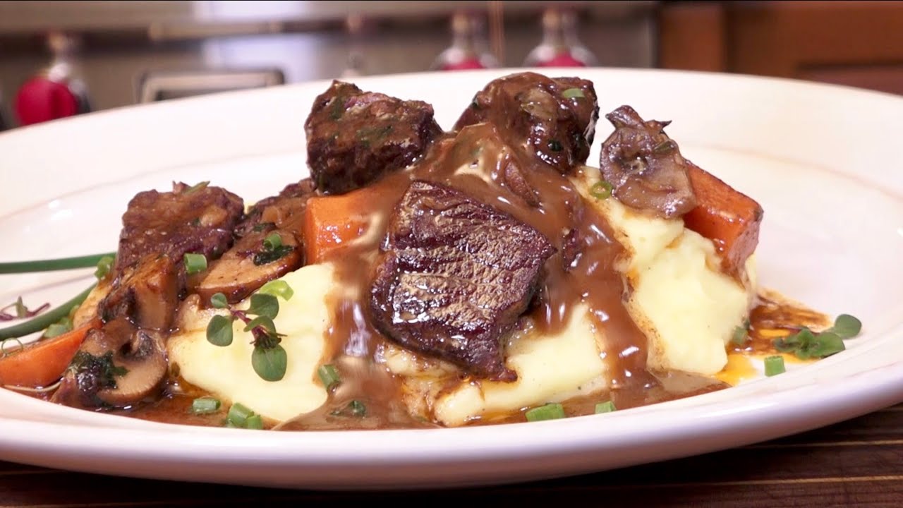 I show you how to make beef Bourguignon, classic slow simmered beef stew in red wine from Burgundy, France. I refer to the master chef, Escoffier about how it was originally made and delve deep into the details about why you use a Pinot Noir, why browning the meat is so important. This finished dish would get Julia Child’s blessing. FULL RECIPE BELOW.