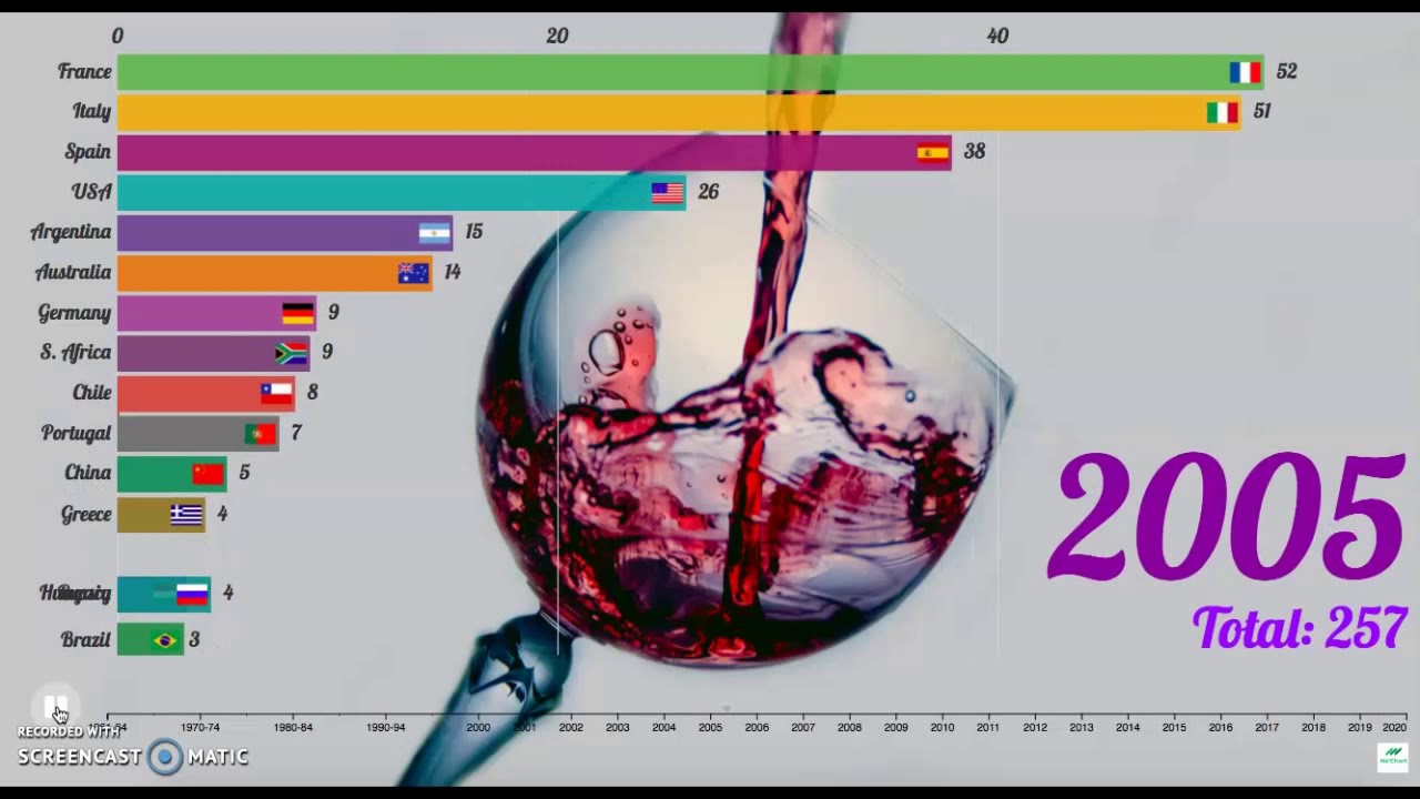 This video show the TOP 15 WINE producing Countries in the WORLD from 1961 to 2019.