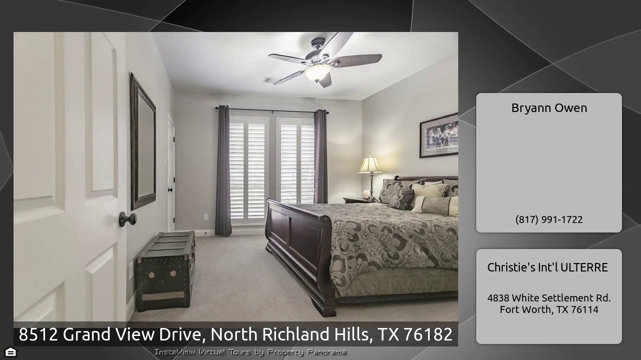 The Virtual Tour for the property at 8512 Grand View Drive, North Richland Hills, TX 76182 listed for $479,990: Other homes for sale by Bryann Owen of Christie's Int'l ULTERRE: Immaculate Keller ISD home with designer upgrades. A gorgeous iron doors greets you as you enter the foyer with soaring ceilings and a grand staircase. Study with French doors on your left and an oversized dining room on your right which leads to a butlers pantry and huge walk in pantry. The Master bedroom and bathroom is a private oasis on the first floor. Upstairs are 3 additional bedrooms with game room. The pool …