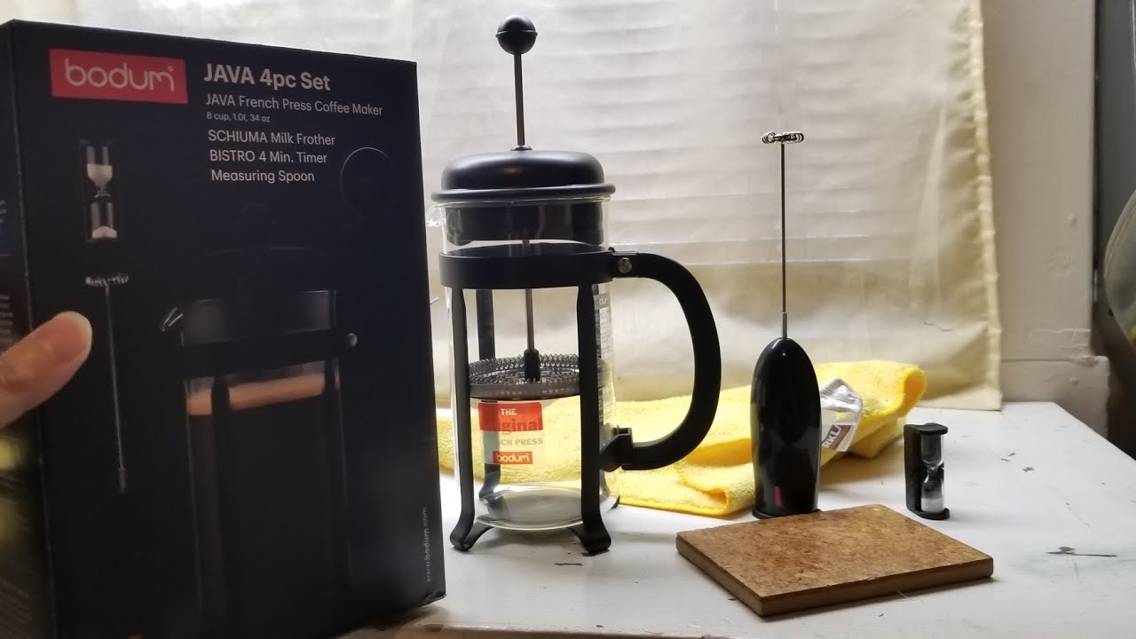 I always wanted a Bodum French Press and bought a 4 piece set. The set included a Bodum Java French Press ( ) , electric milk frother ( ) , 4 minute sand hour glass timer ( ). and a coffee scooper ( ). So in terms of value its a good deal. However, I prefer the Bodum metal chrome french press ( ) more as the Bodum Java French Press is made of plastic. Even the cap and lower stem where the filter is plastic. Btw, my Youtube vlogs and reviews may also have associated affiliate links to products that may earn from qualifying purchases.