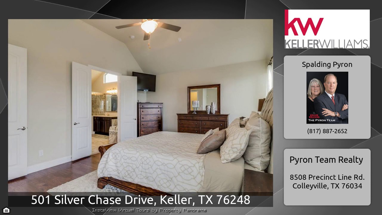 The Virtual Tour for the property at 501 Silver Chase Drive, Keller, TX 76248 listed for $559,900: Other homes for sale by Spalding Pyron of Pyron Team Realty: Gorgeous home located on a large landscaped corner lot in Marshall Ridge is loaded with upgrades and is a must see! Featuring 4 spacious bedrooms, 3.5 baths, a private study with french doors, inviting family room with fireplace, formal dining, dream kitchen with large island, stainless appliances, granite, coffee bar, abundant counter and cabinet space & walk-in pantry, cozy breakfast nook, large master suite down with oversized …