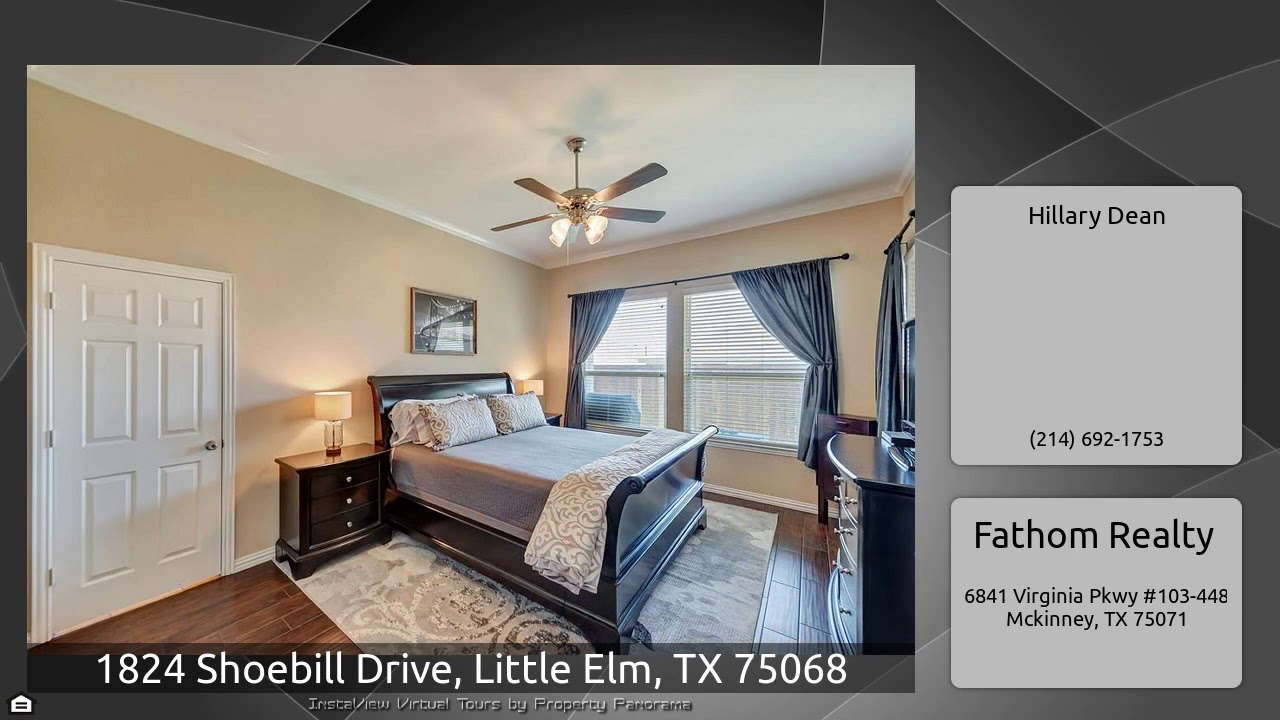 The Virtual Tour for the property at 1824 Shoebill Drive, Little Elm, TX 75068 listed for $273,900: Other homes for sale by Hillary Dean of Fathom Realty: Step into the over-sized foyer and sigh a breath of relief. You have found your new home! Dedicated study with french doors to your left. Wood like ceramic tile beckons you to walk past the dining room and into the open kitchen with under cabinet lights, SS appliances, granite counters, 42 in. cabinets, large island with gas stove & custom lower cabinet shelving. Step past the living Rm and into the screened in porch and you'll see the …