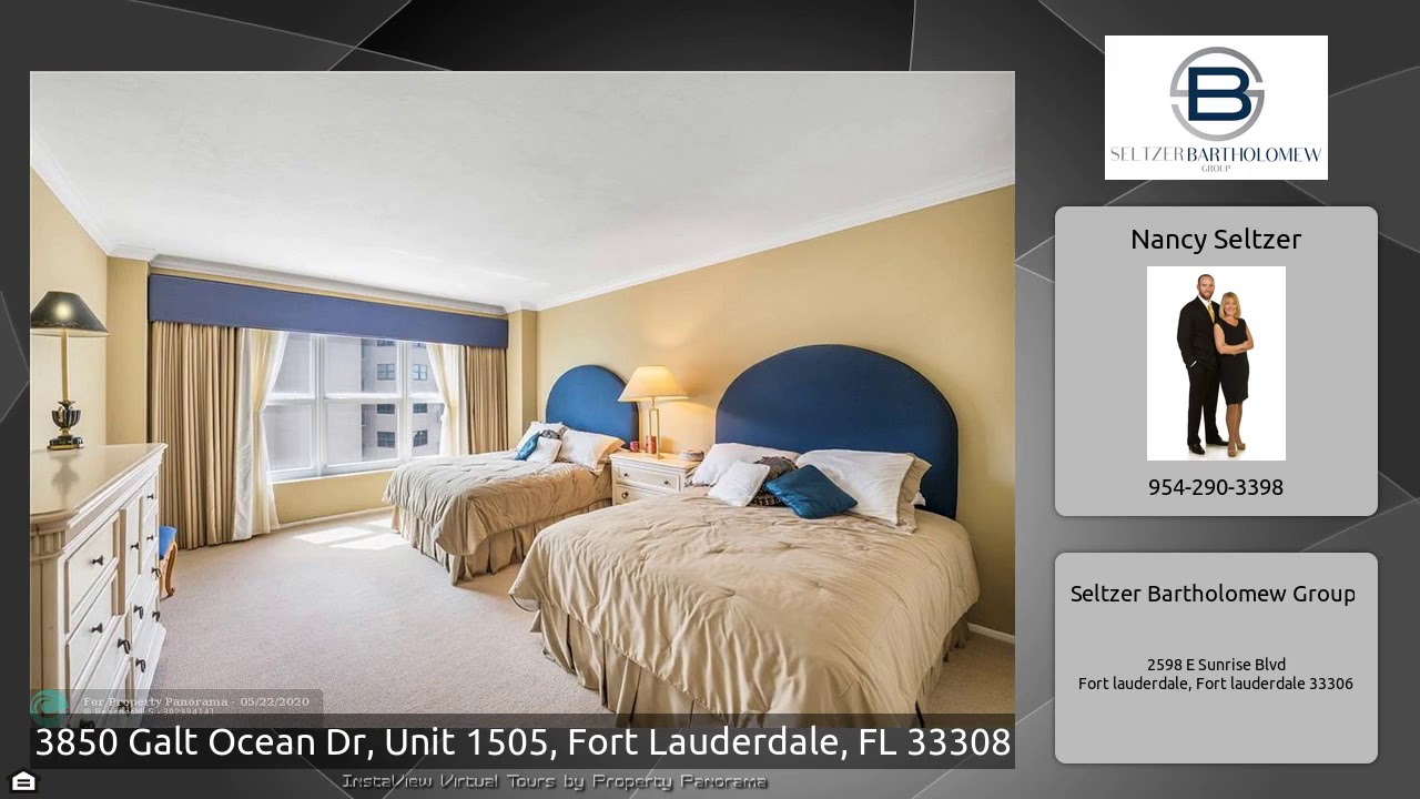 The Virtual Tour for the property at 3850 Galt Ocean Dr, Unit 1505, Fort Lauderdale, FL 33308 listed for $520,000: Other homes for sale by Nancy Seltzer of Seltzer Bartholomew Group: Lots of space and even more potential! Ocean views east & intracoastal views west from this spacious, sunny, south facing unit. Closed kitchen w/french door provides privacy (no dirty dishes!) when entertaining family & guests & huge second bedroom can easily accomodate 2 double/queen beds. Soffit lighting on both east & west living room walls & cans in dining room provide lots of light …